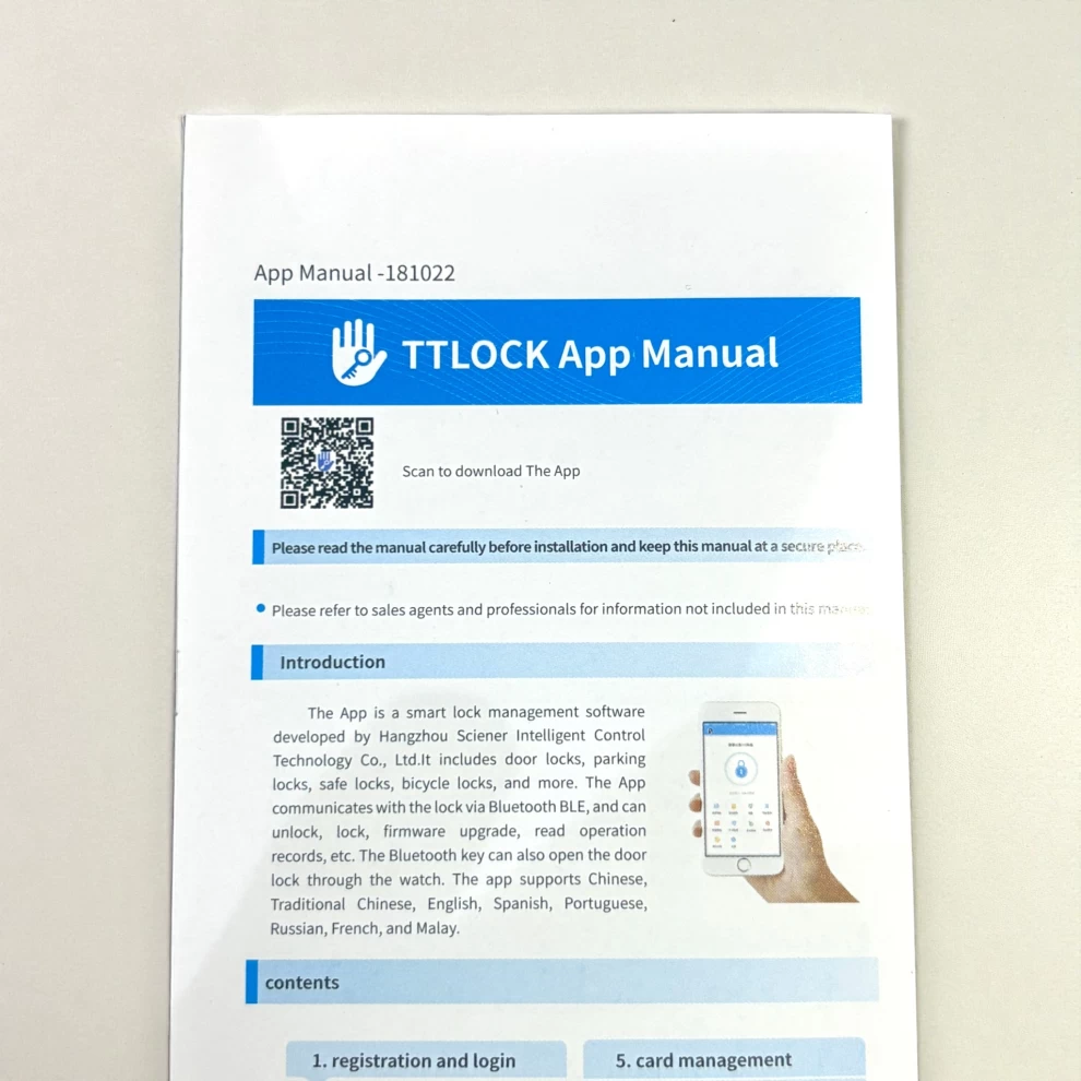 • 🔑 طرق فتح متعددة — بصمة، تطبيق TTLock، بلوتوث، كلمة مرور، NFC، بطاقة سحب، ومفتاح احتياطي