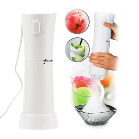 تصميم مدمج وسهل الاستخدام، تعمل على تكسير مكعبات الثلج العادية بسرعة إلى قوام ناعم أو خشن حسب رغبتك – مثالية للعصائر، السلاش، القهوة المثلجة، والحلويات. سواء كنت في المطبخ أو البار المنزلي، هذه الآلة الصغيرة هي المساعد المثالي لك! 🍧🍹