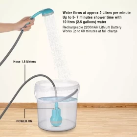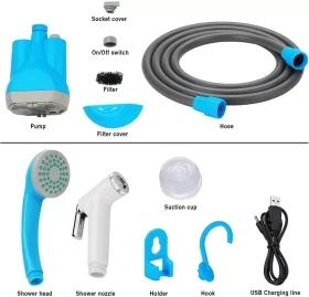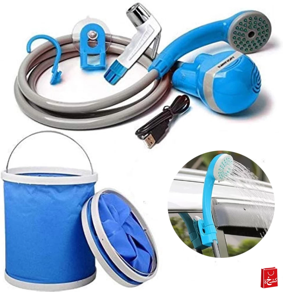 استمتع بنظافة وانتعاش أينما كنت! هذا الشطاف المتنقل يأتي مع دلو قابل للطي بسعة 15 لتر، ومضخة مائية تعمل بالبطارية، مثالي للرحلات، التخييم، والظروف الخارجية.