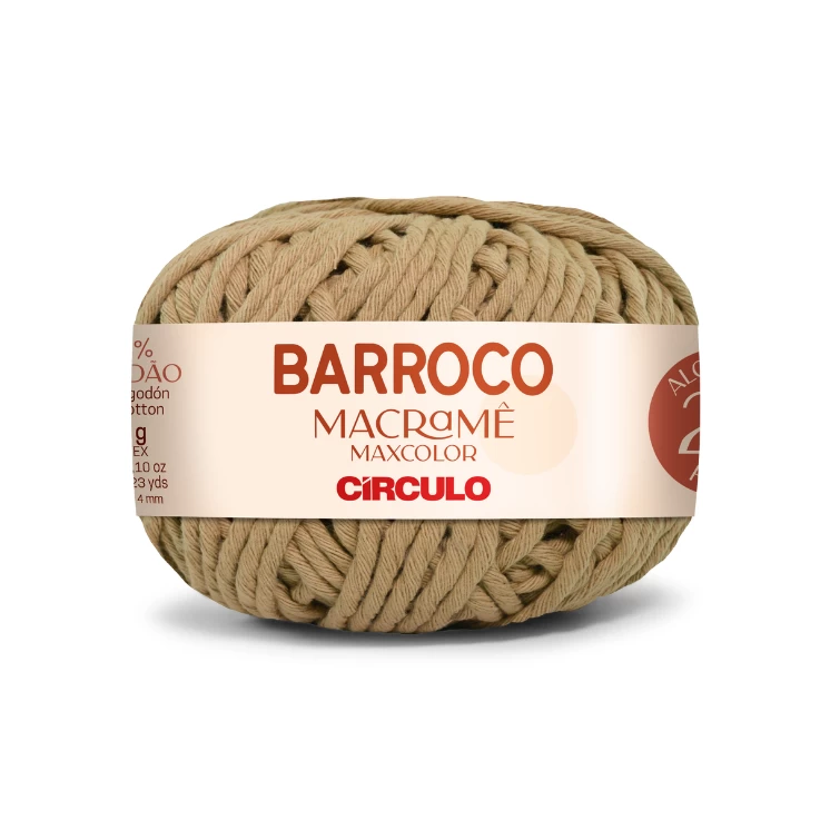Circulo's Barroco Macramé is a single-ply, 4mm, soft and plush string made with 100% Brazilian virgin cotton intended for knotting, knitting, crochet, weaving and other fibre art projects.