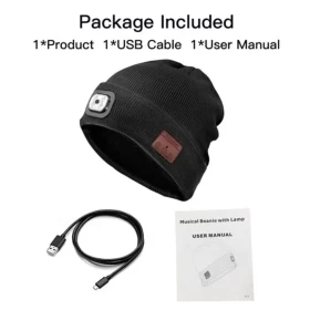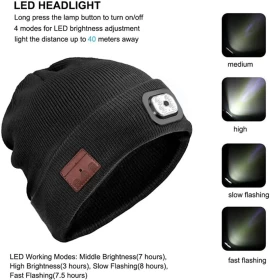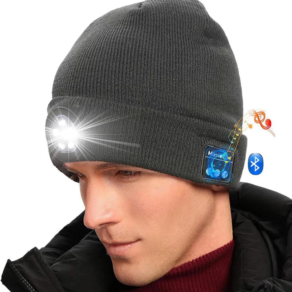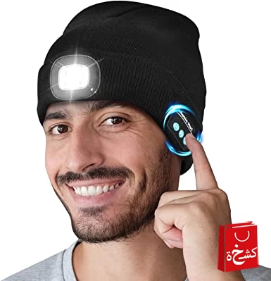 قبعة شتوية مع سماعات بلوتوث و مع مصباح LED