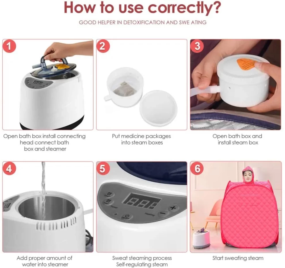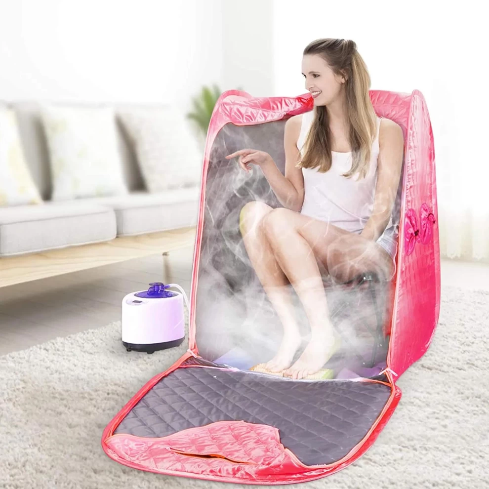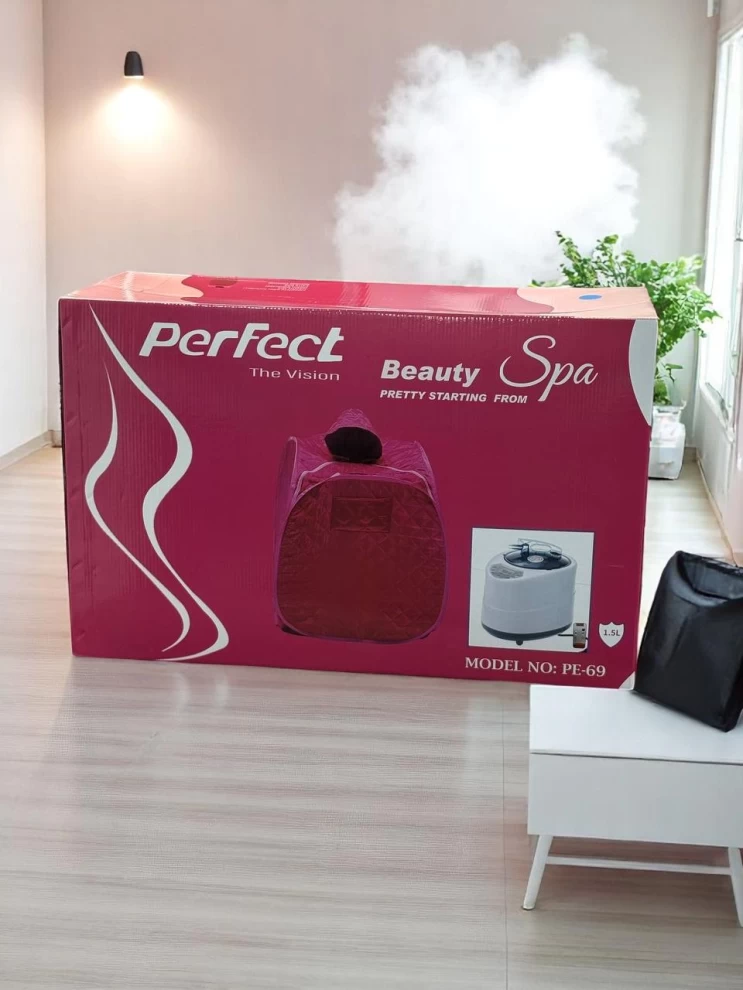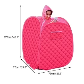 خيمة ساونا حرارية قابلة للطي بتصميم مريح وعملي، مزودة بجهاز بخار بسعة 1.5 لتر، تمنحك جلسة تبخير فعّالة لتنظيف البشرة، تقليل التوتر، وتحفيز الدورة الدموية – مثالية للاستخدام المنزلي.