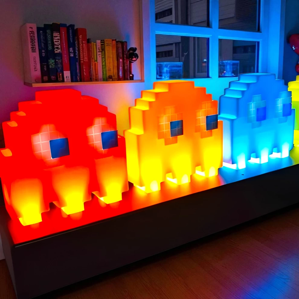 أضف لمسة من الحنين وروح الألعاب الكلاسيكية إلى غرفتك مع مصباح Pac-Man Retro Icon Light! تحفة فنية مضيئة مستوحاة من لعبة الأركيد الشهيرة في الثمانينات، تضم الشخÅصيات الأيقونية مثل Inky وBlinky وPinky وClyde المضيئة بألوان LED زاهية! مثالي لغرف الأطفال، عشاق الألعاب، أو كديكور عصري مميز.