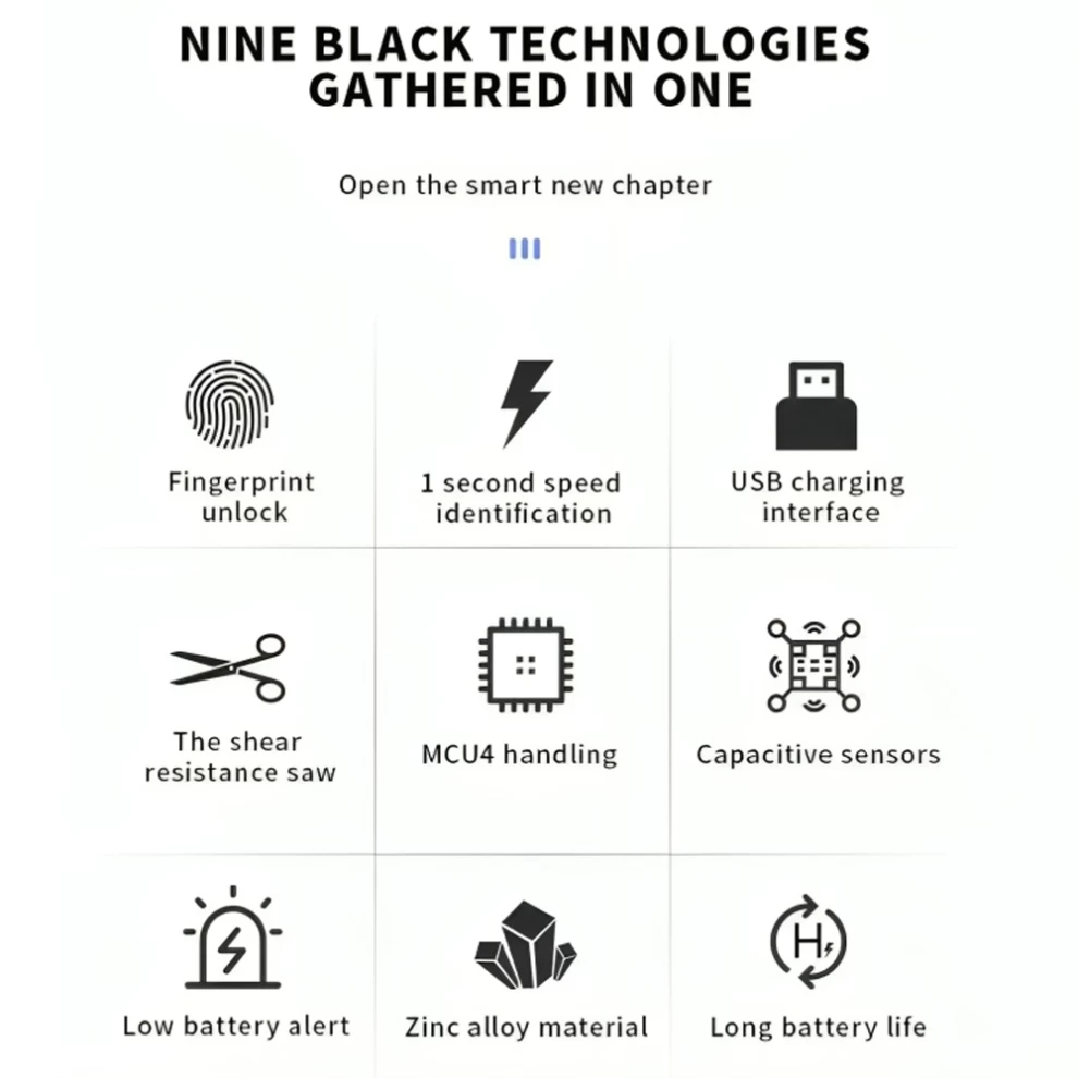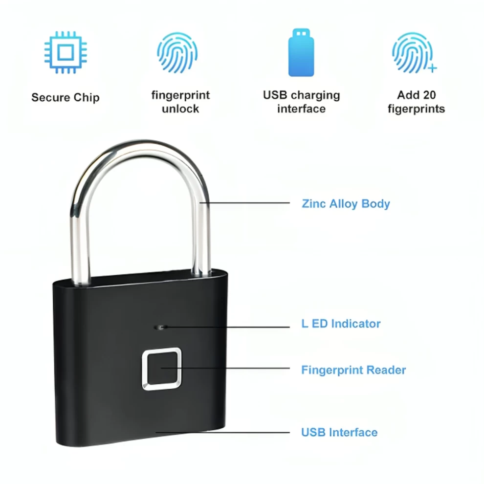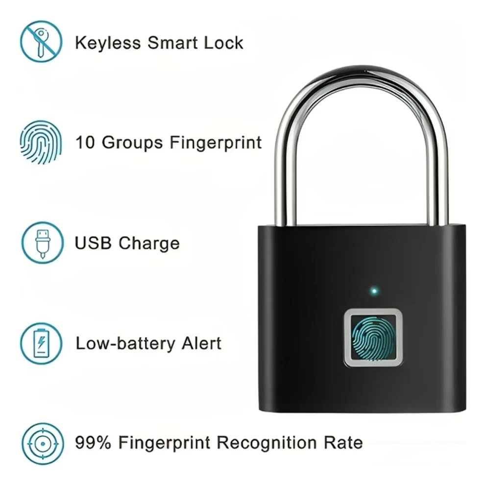 هذا القفل الذكي يعمل ببصمة الإصبع فقط، ويتيح لك فتحه في أقل من ثانية وبأي زاوية بفضل حساس التعرف بزاوية 360°. يمكنك تسجيل ما يصل إلى 10 بصمات مختلفة، مما يجعله مثاليًا للاستخدام العائلي أو المشترك. تصميمه صغير وآمن – مثالي للسفر، الصالات الرياضية، الحقائب، الأبواب، وصناديق الأدوات.