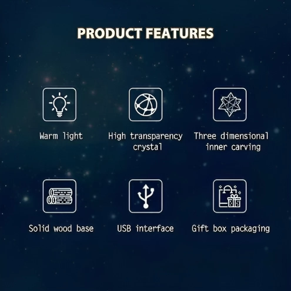 • 🧼 مواد آمنة وموثوقة – الكريستال صلب وخالٍ من الشوائب، والخشب ناعم وآمن للمس