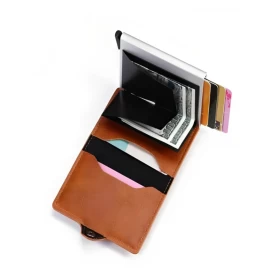 احفظ بطاقاتك الائتمانية بأمان وأناقة! تأتي هذه المحفظة بتصميم مدمج وعصري، تحتوي على قسم معدني يتّسع لـ 6 بطاقات بتقنية RFID لمنع السرقة الإلكترونية، بالإضافة إلى فتحات إضافية للهوية أو رخصة القيادة وبعض النقود. تصميم أنيق ومناسب للرجال والنساء.