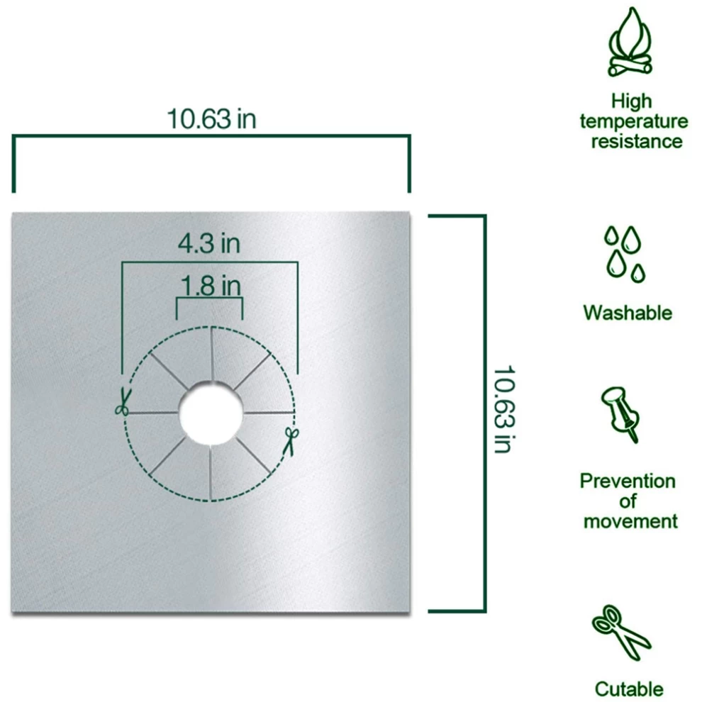 يمكن تشذيب فتحة الأغطية العلوية بالمقص لتناسب موقد الغاز بشكل صحيح قبل الاستخدام
