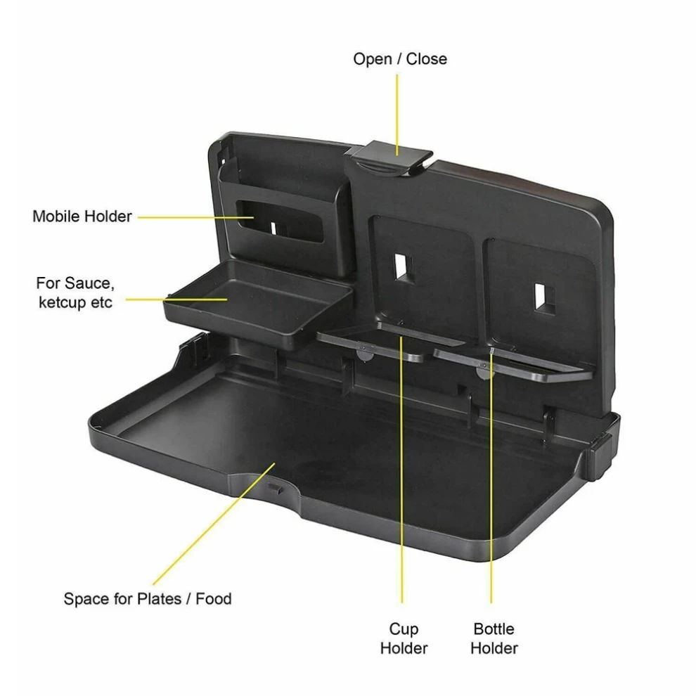 هذه الطاولة القابلة للطي تُستخدم كـ حامل طعام، حامل مشروبات، ومنظم عملي للأغراض في نفس الوقت. مناسبة للرحلات، الاستخدام اليومي، وتنقلاتك مع العائلة، وتوفر لك مكانًا مناسبًا لهاتفك، محفظتك، مشروباتك أو حتى أدوات صغيرة أثناء القيادة.