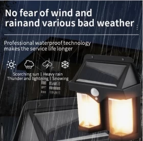 كشاف شمسي مقاوم للماء ويمكن أن يعمل تحت المطر. من السهل تركيبه دون الحاجة إلى أسلاك. كما أنه شديد السطوع ليمنحك إضاءة ثابتة لفترة طويلة.