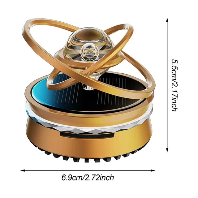 معطر جو دوار بالطاقة الشمسية،  يوزع الروائح ويشتت العطر بسرعة ليمنح رائحة في كافة السيارة، لا حاجة لشاحن بعد الآن لانة يعمل بالطاقة الشمسية يستخدم ألواح تركيز الطاقة الشمسية لتجميع الطاقة الضوئية، وتجميع الخضوع بفاعلية، فهو صديق للبيئة، مصنوع بجودة ودقة عالية.
