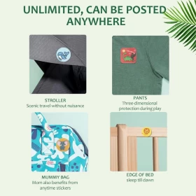 • 🩹 تصميم لاصق سهل الاستخدام – تُلصق على الملابس، القبعات، الحقائب أو العربات