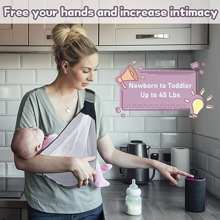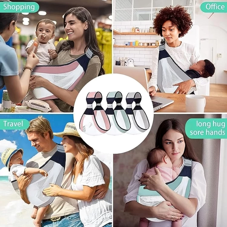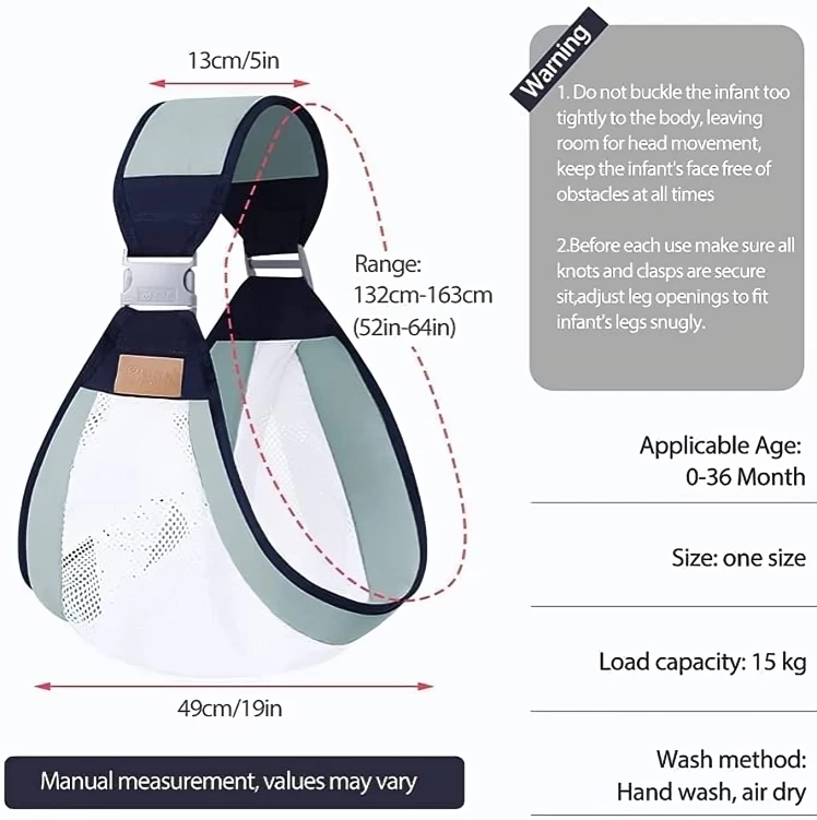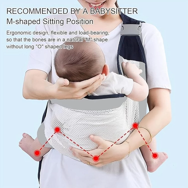 تمتاز حمالة أطفال قابلة للتعديل لحمل لحديثي الولادة بقابلية حمل الطفل بسهولة وتمتاز بمشابك جانبية متينة، وقابلة للتعديل لفكه بيد واحدة وبسرعة. تاتي بقماش مبطن وباحزمة تسمح بنفاذ الهواء. تاتي باحزمة واسعة ومبطنة للكتف قابلة للتعديل، خفيفة الوزن وسهلة الطي والحمل. كما أنها مريحة جدًا لإرضاع طفلك عندما تكون بعيدًا عن المنزل وتجنب الإحراج.