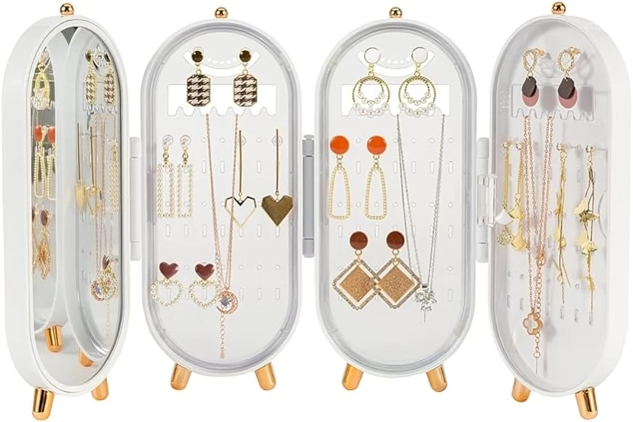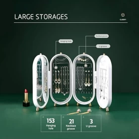 منظم مجوهرات القلادة مع تصميم شاشة قابلة للطي