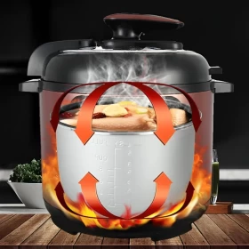 •    جهاز لتنفيس الضغط التلقائي عند زيادة الضغط لضمان السلامة أثناء الطهي