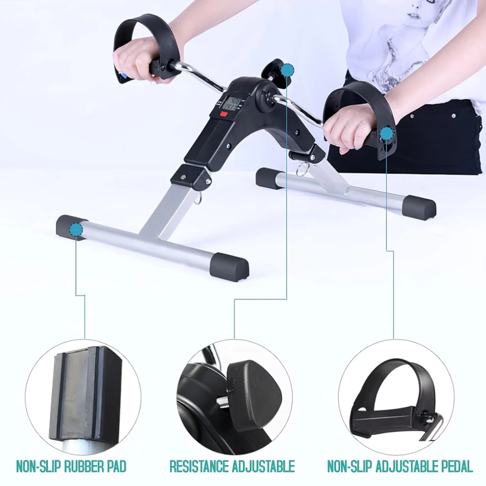 دراجة صغيرة تحت المكتب لممارسة التمارين اليد والقدم وهي قابلة للحمل