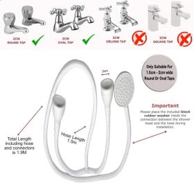 • ملاحظة: يمكن أن يكون ملحق بخاخ الصنبور الخاص بنا مناسبًا لمعظم أنواع الصنابير المستديرة، وليس مناسبًا للصنابير المربعة والصنابير القديمة وصنابير حوض الاستحمام.