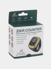 اضغط مطولًا على الزر لتشغيل الجهاز. ستظهر شاشة OLED وتعرض الوقت، التاريخ، وعدد التسبيحات.