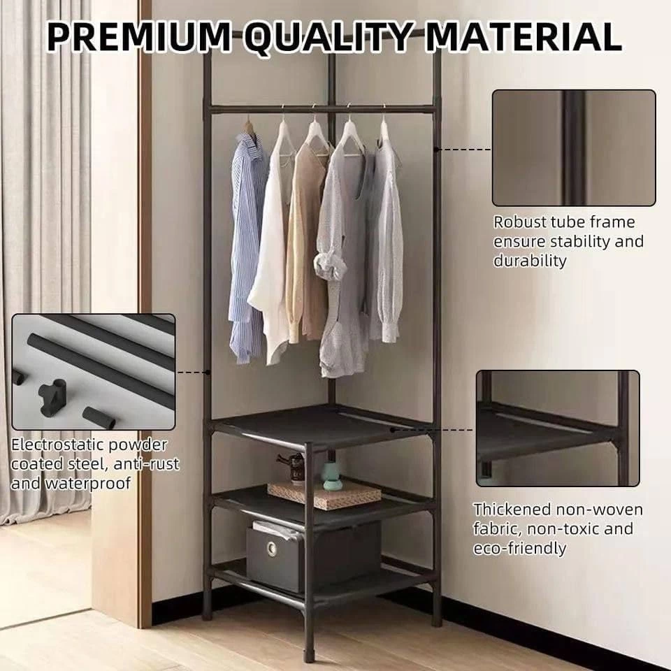 ✅ تخزين متعدد الوظائف – مزودة بأماكن للتعليق، أرفف للتخزين، وخطافات جانبية للملابس، الأحذية، القبعات، والإكسسوارات.