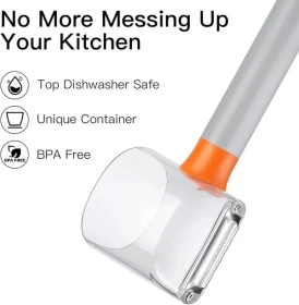 • شفرة عريضة حادة للغاية تقلل من المقاومة وتلائم قشور الفاكهة بشكل مثالي، مما يجعل التقشير سهلاً.