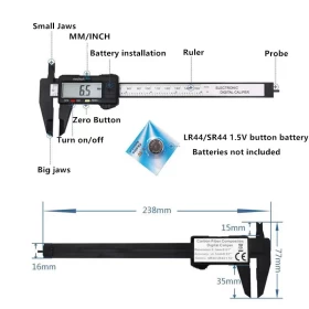 احصل على قياسات دقيقة وسهلة مع هذا الكاليبر الرقمي الخفيف والمصنوع من ألياف الكربون. مثالي للأعمال الدقيقة مثل الإلكترونيات، الطباعة ثلاثية الأبعاد، الأشغال اليدوية، الميكانيكا والهوايات التي تتطلب دقة عالية. يتميز بشاشة LCD واضحة، ووظائف قياس متعددة تشمل القياسات الداخلية والخارجية والعمق والخطوة.