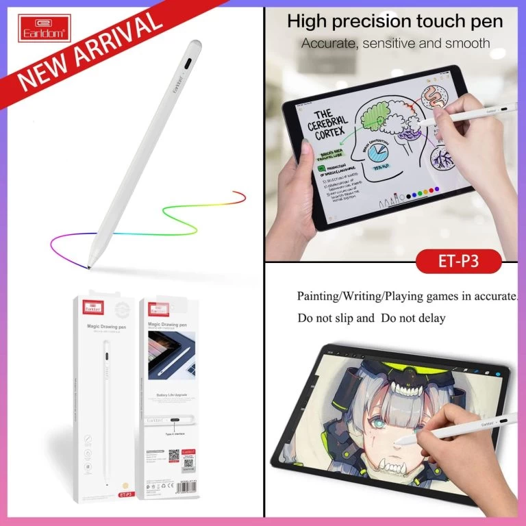 قلم Earldom P3 Magic Drawing Pen – P3 هو قلم ستايلس عالمي مصمم ليمنحك تجربة سلسة على أجهزة iPad، والأجهزة اللوحية بنظام Android، وأجهزة Huawei والمزيد. سواء كنت ترسم، تكتب، أو تتصفح جهازك، يوفر لك هذا القلم لمسة سلسة ودقيقة دون الحاجة إلى Bluetooth أو أي إعدادات إضافية—ما عليك سوى التقاطه والبدء في الاستخدام فورًا!
