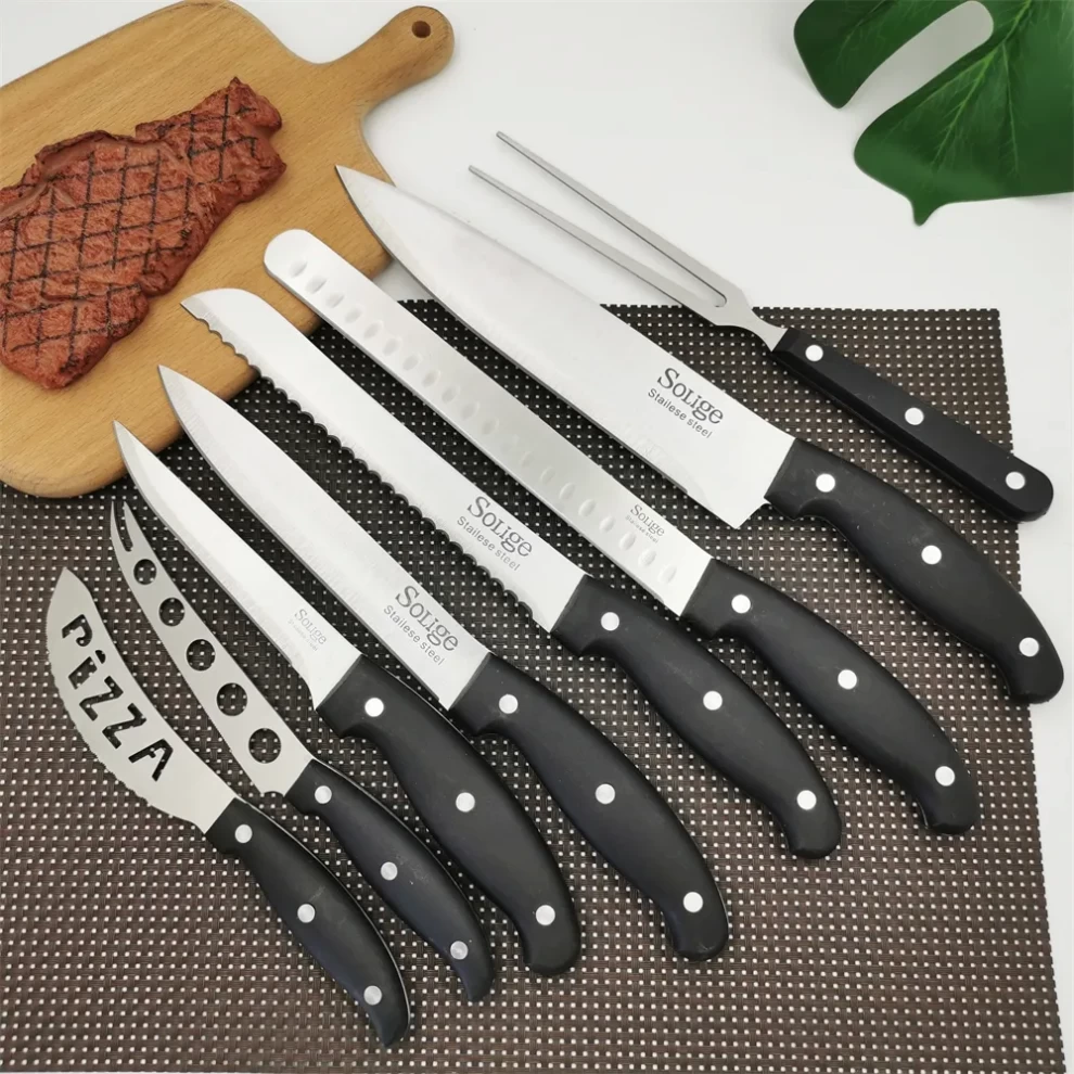 ✅ طقم متكامل من 25 قطعة – يشمل سكاكين الطهاة، الستيك، الفواكه، الخبز، والمزيد لجميع المهام 🍞🥩🍎