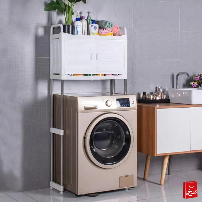2️⃣ ضع الرف فوق الغسالة بشكل آمن وثابت