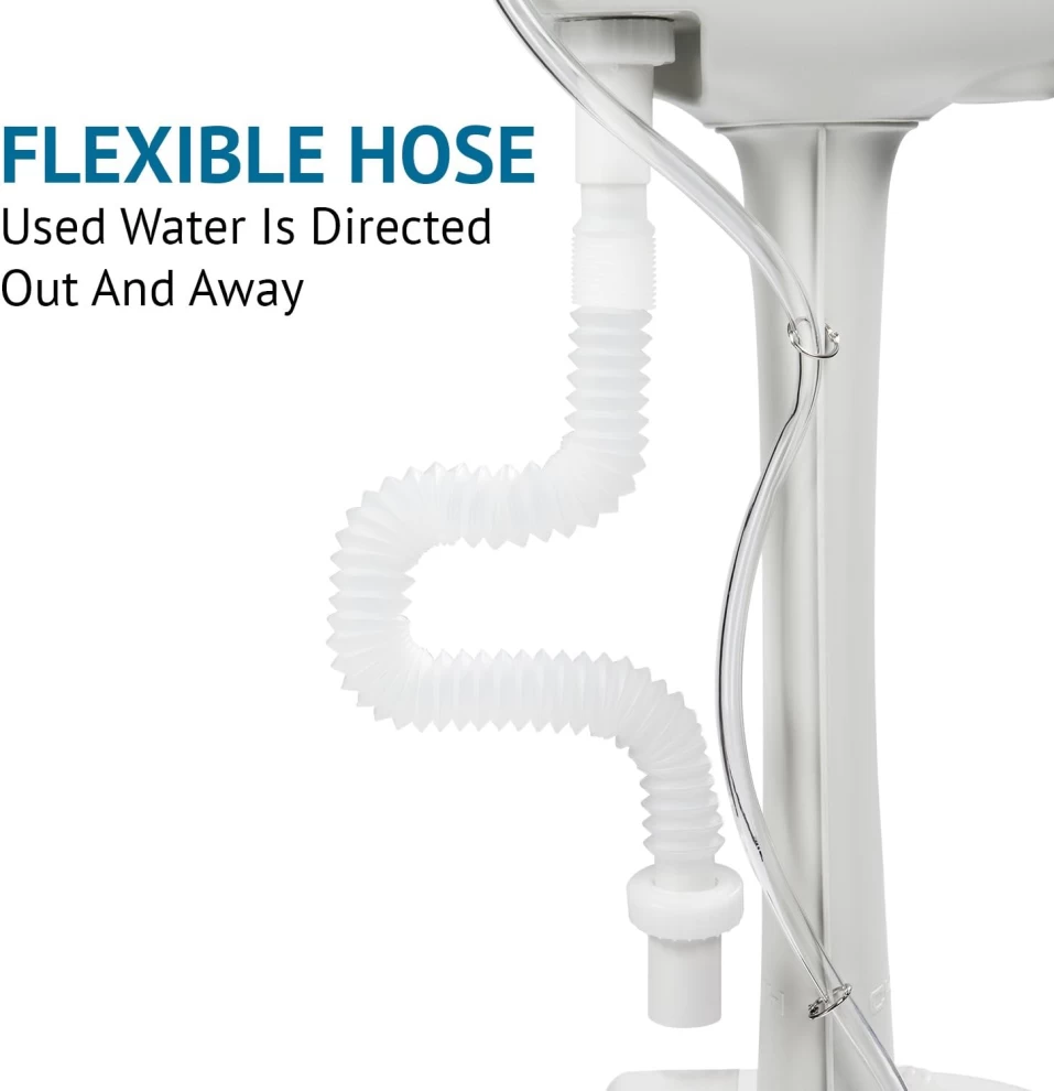استمتع بالنظافة في الهواء الطلق مع المغسلة المتنقلة، المزودة بخزان مياه 17 لتر، مضخة يدوية بالقدم، وصنبور مدمج، مثالية للتخييم، الرحلات، ومواقع العمل. تحتوي على موزع صابون سائل 3 لتر، حامل مناديل، وخرطوم تصريف مرن، مع تصميم متين وخفيف الوزن بعجلات لسهولة النقل.