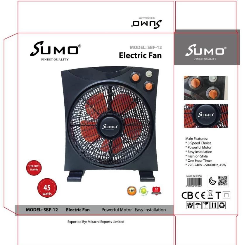 استمتع بنسيم منعش في أي وقت مع مروحة سومو الكهربائية بقياس 12 إنش – بتصميم مدمج، أداء عالي، وتشغيل هادئ. مثالية لغرف النوم، المكاتب، المطابخ والسكن الطلابي.
