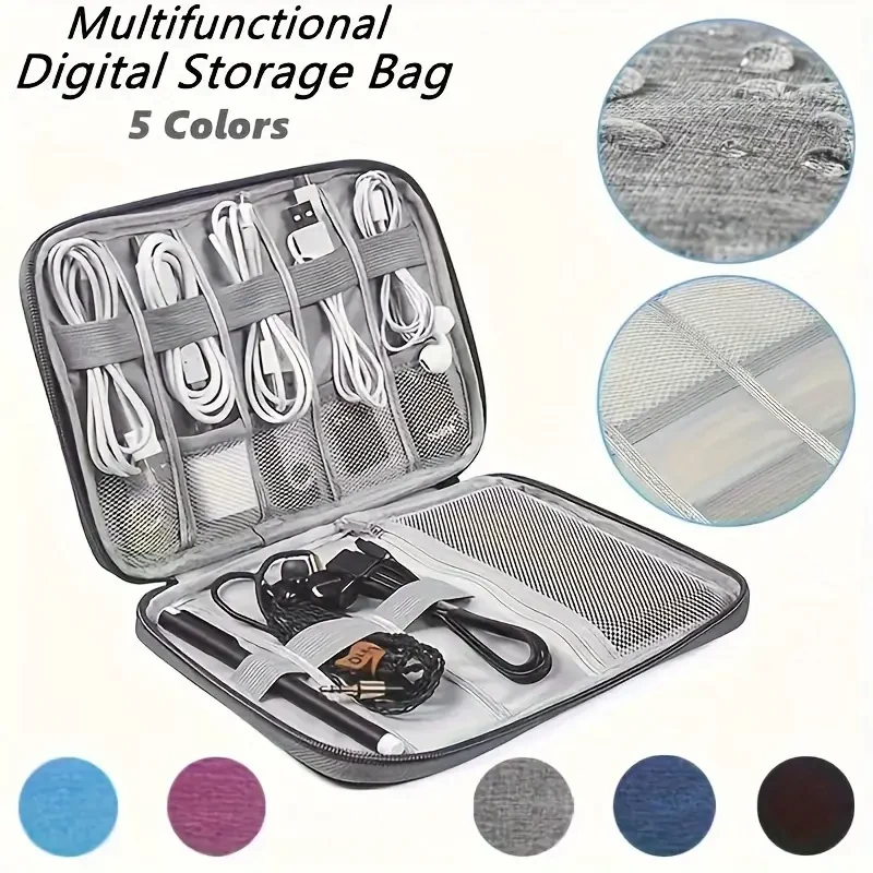ابقَ منظمًا أثناء التنقل مع حقيبة تخزين إلكترونية مقاومة للماء – مثالية لحفظ الكابلات، الشواحن، الهارد ديسك، بطاقات الذاكرة والمزيد. خفيفة الوزن، مدمجة، ومناسبة للسفر أو الاستخدام اليومي.
