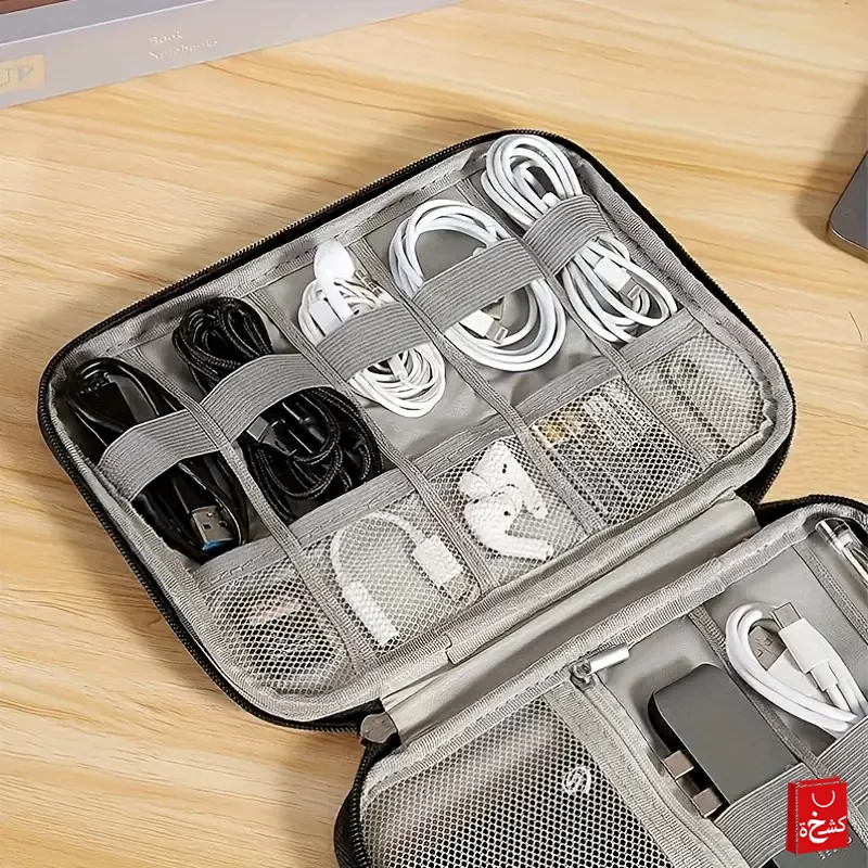 • 🔌 تصميم متعدد الأقسام – لحفظ الكابلات والشواحن والأجهزة بشكل مرتب