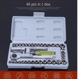 كن مستعدًا لأي مهمة صيانة أو DIY مع مجموعة الأدوات المكونة من 40 قطعة التي تشمل مفاتيح سوكيت، رؤوس مفكات، ومقبض رانشيت – جميعها منظمة في حقيبة مدمجة قابلة للحمل.