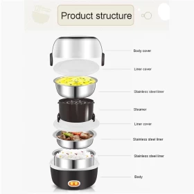 تناول وجبة ساخنة أينما كنت مع صندوق الغداء الكهربائي متعدد الطبقات. مثالي للعمل، المدرسة، السفر، أو الاستخدام المنزلي – يُسخن الطعام بسرعة ويحتفظ بنكهته وشكله.