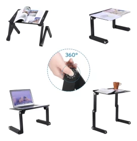 ابقَ مرتاحًا ومنتجًا في أي مكان مع هذه الطاولة القابلة للتعديل والمزودة بمراوح تهوية. مثالية للاستخدام على السرير أو الأريكة أو الأرضية – مكتبك المحمول المثالي.