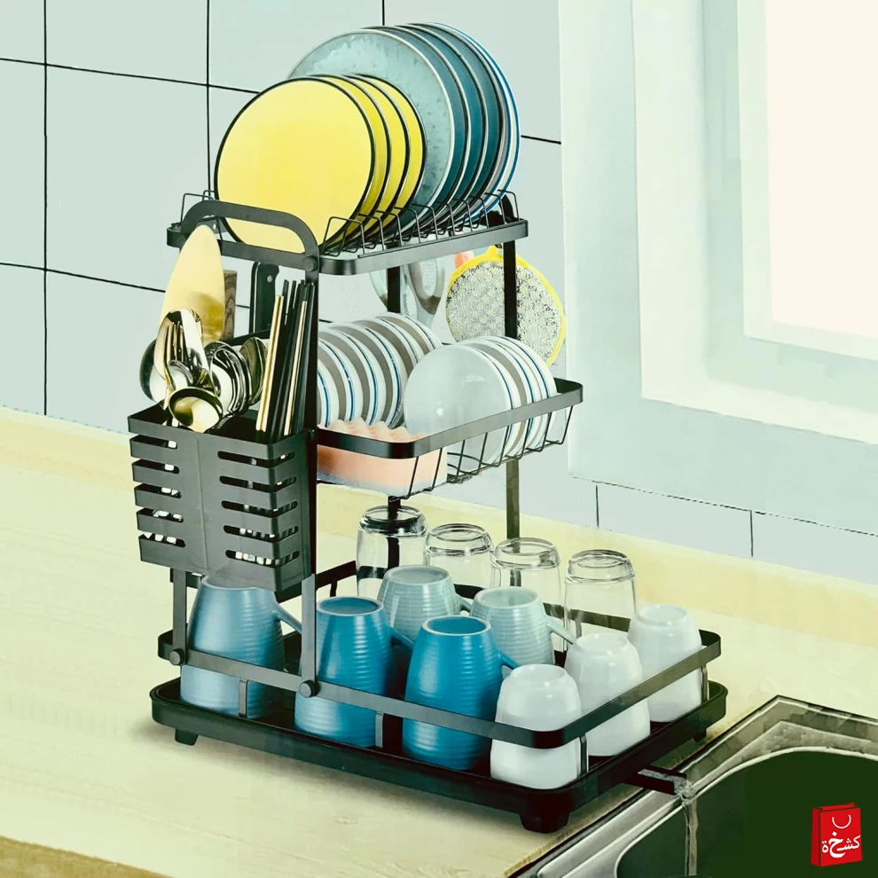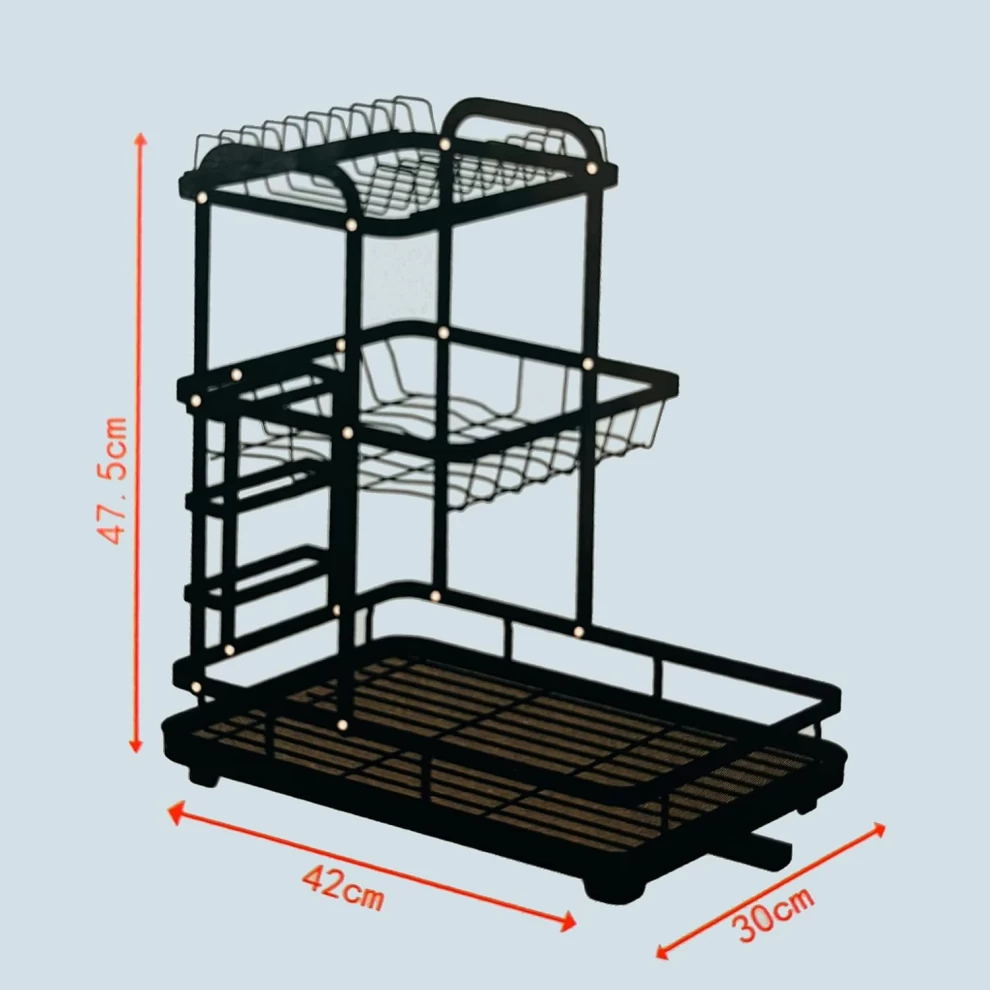 استفد من مساحة مطبخك مع رف الصحون الأنيق المقاوم للصدأ بثلاث طبقات. مثالي لترتيب الصحون، الأطباق، الأكواب، وأدوات المطبخ مع الحفاظ على سطح المطبخ نظيفاً وجافاً.
