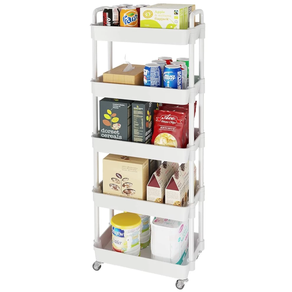 🧺 تصميم 5 طوابق واسع – مثالي لتخزين المأكولات، البقالة، الكتب، الألعاب، أدوات الحمام، وأكثر.