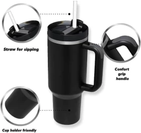 كوب حراري مع يد وماصة 1200ml ستانلس ستيل عازل للمشروبات الساخنة والباردة