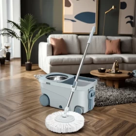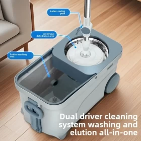اجعل تنظيف الأرضيات أسهل مع مجموعة الممسحة والدلو المتحرك بالعجلات. تأتي برأس ممسحة من الألياف الدقيقة مع نظام عصر من الستانلس ستيل، مما يمنحك تنظيفًا عميقًا وسريعًا دون جهد. عجلات الدلو تساعدك على التنقل بسهولة بين الغرف دون الحاجة لحمل الماء.