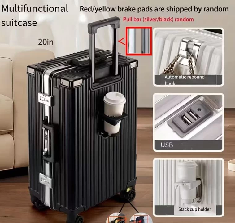 سافر بذكاء مع حقيبة السفر بإطار الألمنيوم وعجلات دوّارة. تأتي بمواد متينة من PC وإطار ألمنيوم قوي، مع حامل كوب مدمج و منفذ شحن USB لمزيد من الراحة. مثالية لرجال الأعمال والمسافرين الدائمين والرحلات العائلية.