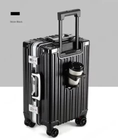 حقيبة سفر بإطار ألمنيوم مع حامل كوب ومنفذ USB – حقيبة ذكية للسفر