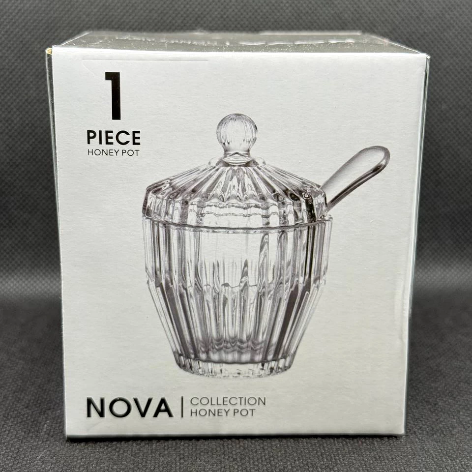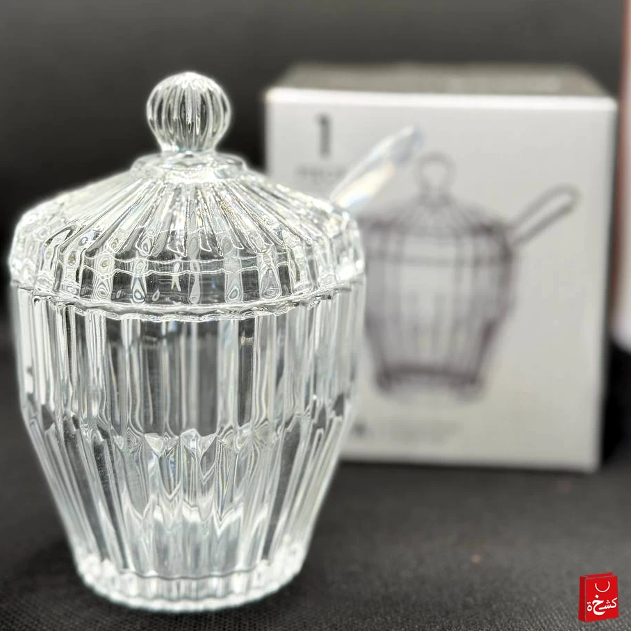أضف لمسة من الفخامة إلى ضيافتك مع هذه السكّرية المصنوعة من الكريستال بتصميم أنيق. تأتي بثلاث قطع (غطاء، وعاء، وملعقة بلاستيكية شفافة) لتقديم السكر أو الحلويات بطريقة راقية في صينية القهوة أو الشاي.