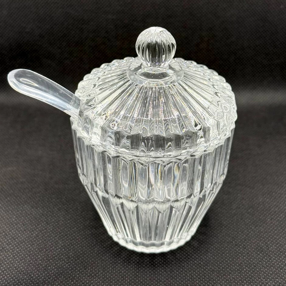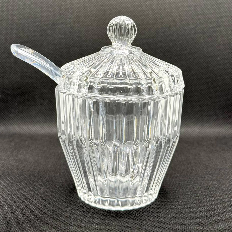 سكّرية فاخرة من الكريستال مع غطاء وملعقة – تصميم أنيق للمجالس