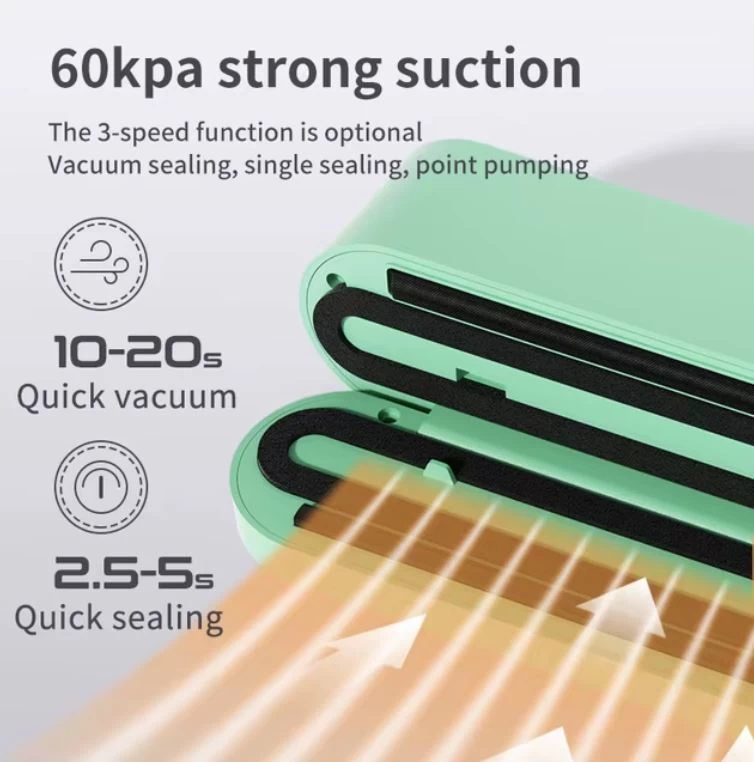 • ⚡ الوظائف: تفريغ الهواء، ختم حراري، منفاخ