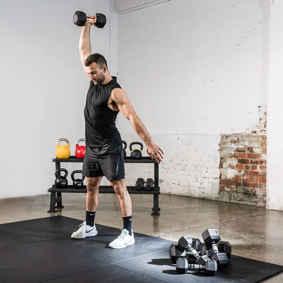 • 1 × دمبل سداسي مطاطي 10KG