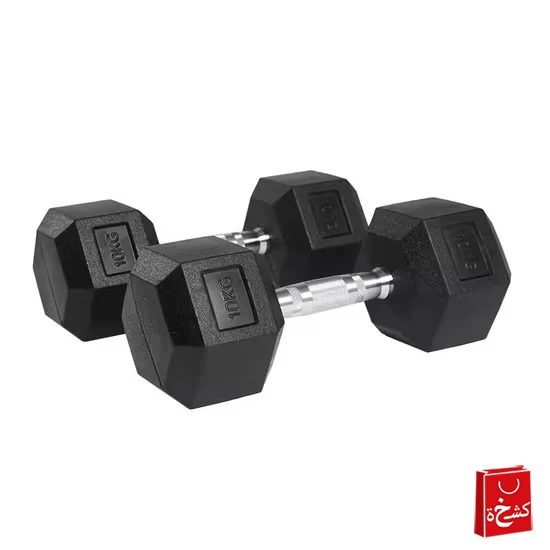 دمبل سداسي مطاطي – أسود 10KG