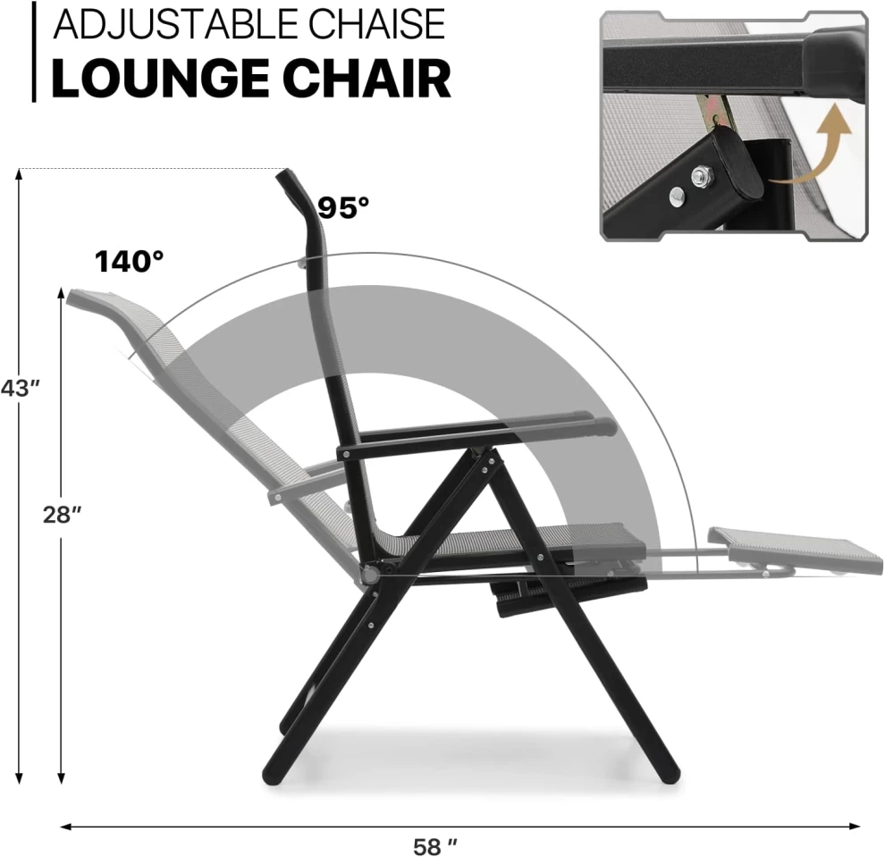 🪑 كرسي قابل للطي – رمادي | 107 × 57.5 سم