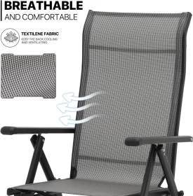 استمتع بالراحة في أي مكان مع الكرسي القابل للطي المصمم ليكون خفيفًا وسهل الحمل مع إطار قوي وخامة مريحة. مناسب للتخييم، الرحلات، الشاليهات، الشاطئ، أو ككرسي إضافي في المنزل.