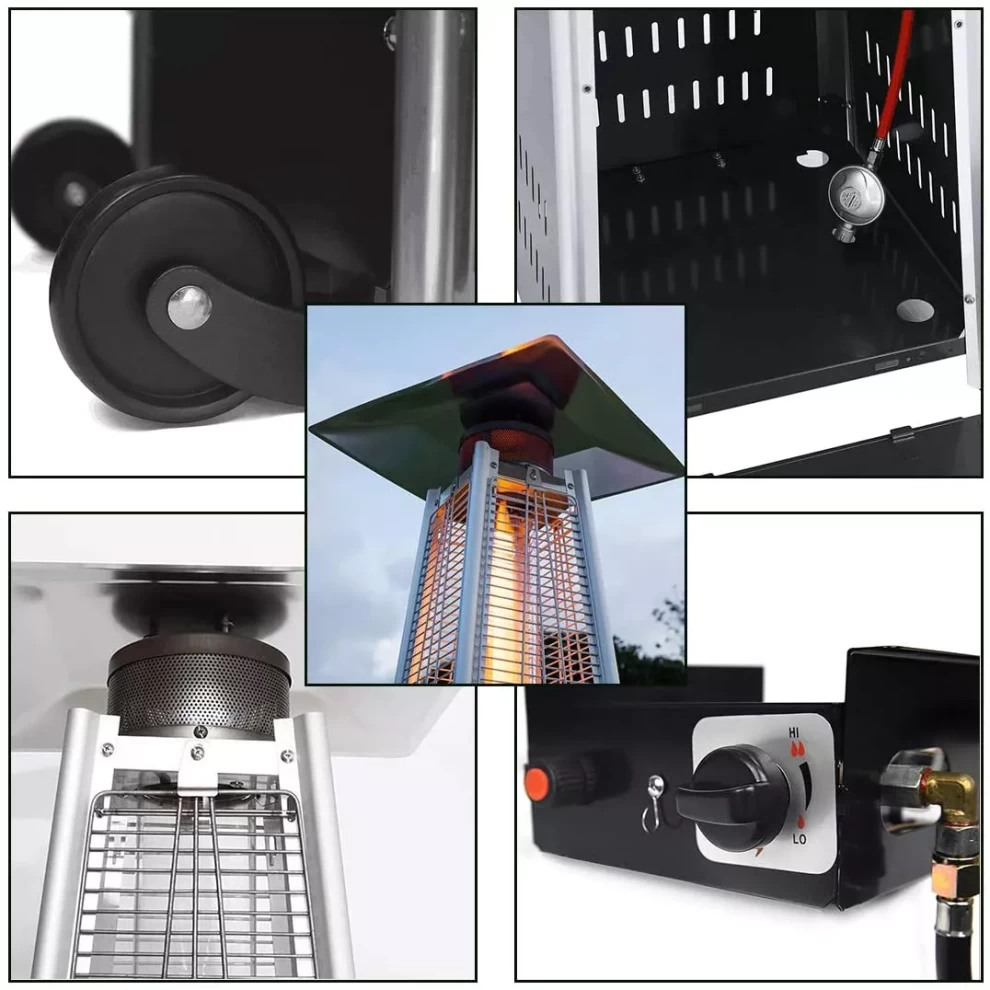 استمتع بالدفء في الهواء الطلق مع دفاية الغاز الهرمية ب3 أنابيب زجاجية، التي توفر 13,000 واط من الحرارة للحدائق، التراسات، والمناسبات الخارجية. تصميمها الهرمي مع 3 أنابيب زجاجية مرئية يجمع بين الأناقة والكفاءة في توزيع الحرارة.