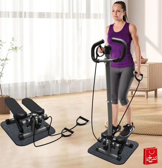 جهاز صعود الدرج الرياضي مع أربطة مقاومة وشاشة LCD – يتحمل حتى 150 كجم