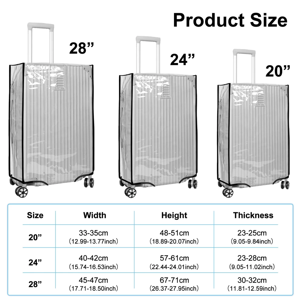 احمِ حقيبتك مقاس 24 بوصة من الغبار، الخدوش، والتآكل مع غطاء الأمتعة الشفاف. تصميمه المقوى والسميك يضمن بقاء حقيبتك نظيفة وآمنة أثناء السفر، بينما يسمح المادة الشفافة بالتعرف على الحقيبة بسهولة دون إزالة الغطاء.
